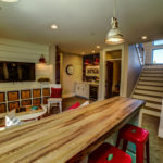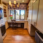 The dining area and kitchen were designed for entertaining with walk-outs to the back Trex deck and an entrance to the covered patio it has great flow for small and large gatherings. The walnut butcher block island offers plenty of seating and the dining area comfortably seats 10+. Quartz countertops, a farmhouse sink, subway tiled backsplash, tons of cabinets, Thermador appliances including a 5 burner gas cook-top, double oven, and microwave finish out this gourmet kitchen. The walk-in pantry has a wall of shelving, additional cabinets, butcher block countertops, and an extra sink. The homework nook, featuring a fun chalkboard, is a great designated space to do homework and sits adjacent to the laundry “palace” with lots of storage and cabinets.