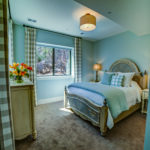 Downstairs you’ll find the family room with bar for extra seating and a second wet bar for entertaining. With a walk-out floor plan and plenty of large windows this level is cheerful and light. There are two more large bedrooms both with walk-in closets and a full bath down the hall. The fourth bedroom is located in the Guest Cottage Suite. This lovely private space with an entrance from both inside and outside the home features a sitting area, a bath, and bedroom. It includes a kitchenette with a sink, refrigerator and freezer drawers, cabinets, counter bar, and a microwave.